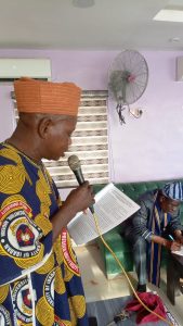 Alayande Stephen T., the immediate Past General Secretary presenting the Secretariat Report before he stepped down as voted for as the Vice Chairman 2 of the Lagos Branch