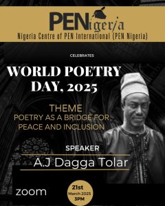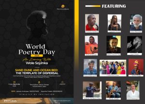 This year’s World Poetry Day has different line up of activities from We are POETS (People Of Exceptional Talents & Skills) organised In- Person event in Mart Recreation Centre in Ogba, with the theme Peace and Inclusion to Poetry Village Evening Hang out still in Ogba, to PEN Nigeria ( Nigeria Centre of PEN International) Virtual Celebration with the theme Poetry as a Bridge For Peace and Inclusion, to the biggest one at Terra Culture with an Evening With Some Soyinka with the theme Sand Dune and Ocean Bed : The Template of Dispersal amongst so many others.